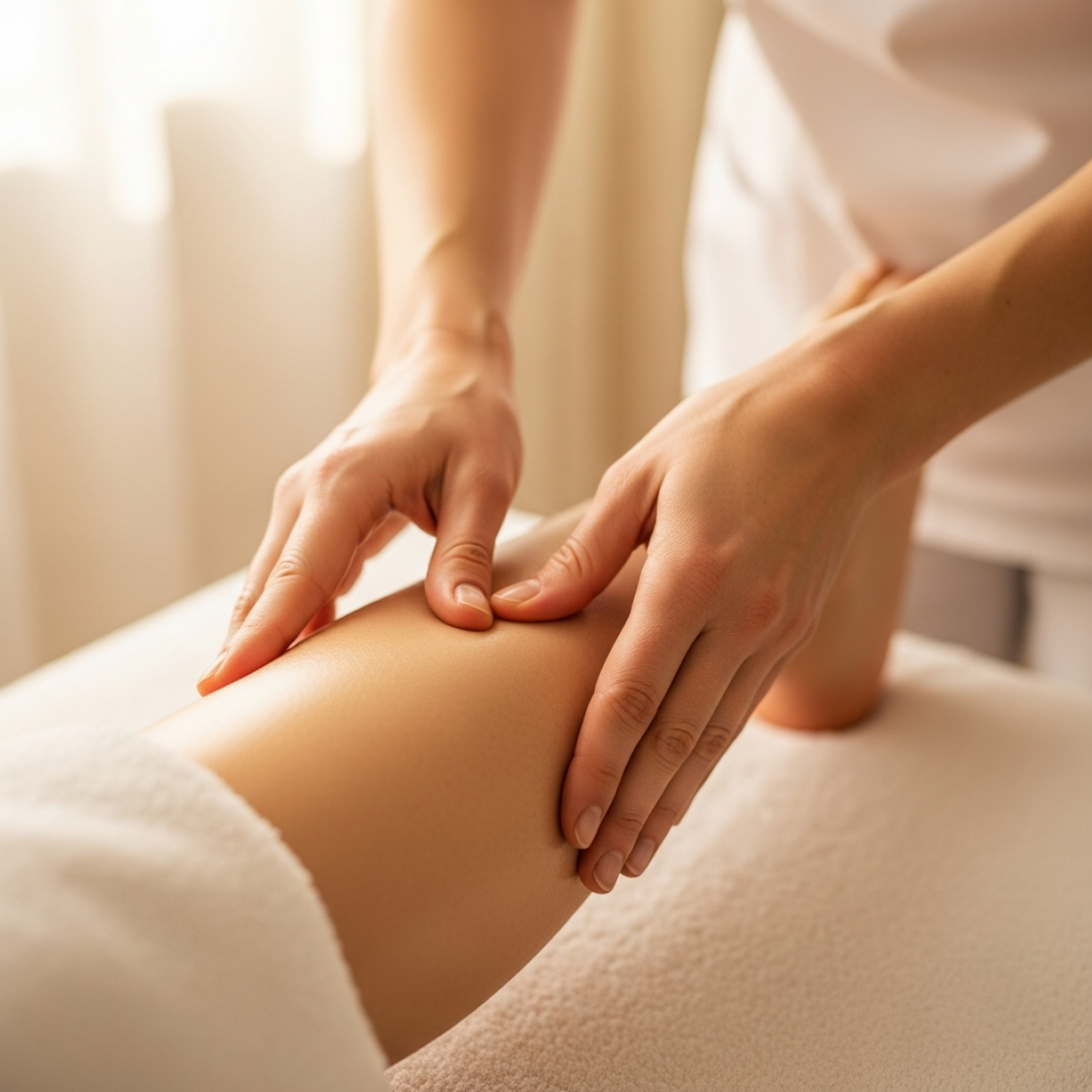 - Ручной лимфодренаж (классика студии): сверхмягкое давление, медленный темп, последовательность «от центра к периферии и обратно»: сначала «освобождаем» крупные коллектора (подколенные, паховые, подмышечные), затем работаем с дистальными зонами, после — возвращаемся к коллекторам.