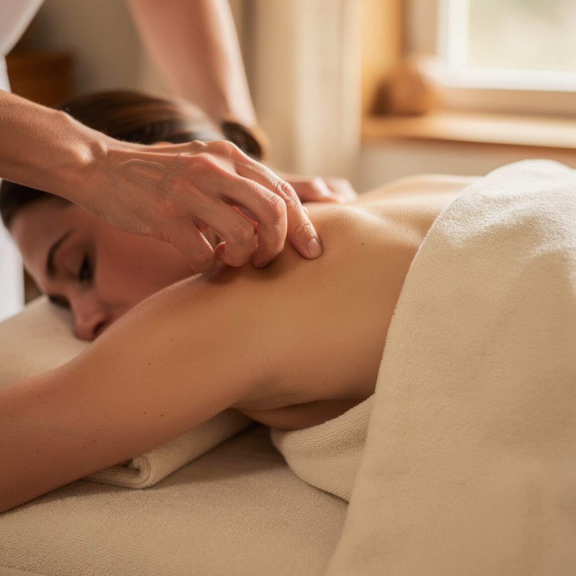 - Атмосфера: тёплый свет, нейтральные масла, бережная драпировка. В процессе можно просить усилить/ослабить давление.
